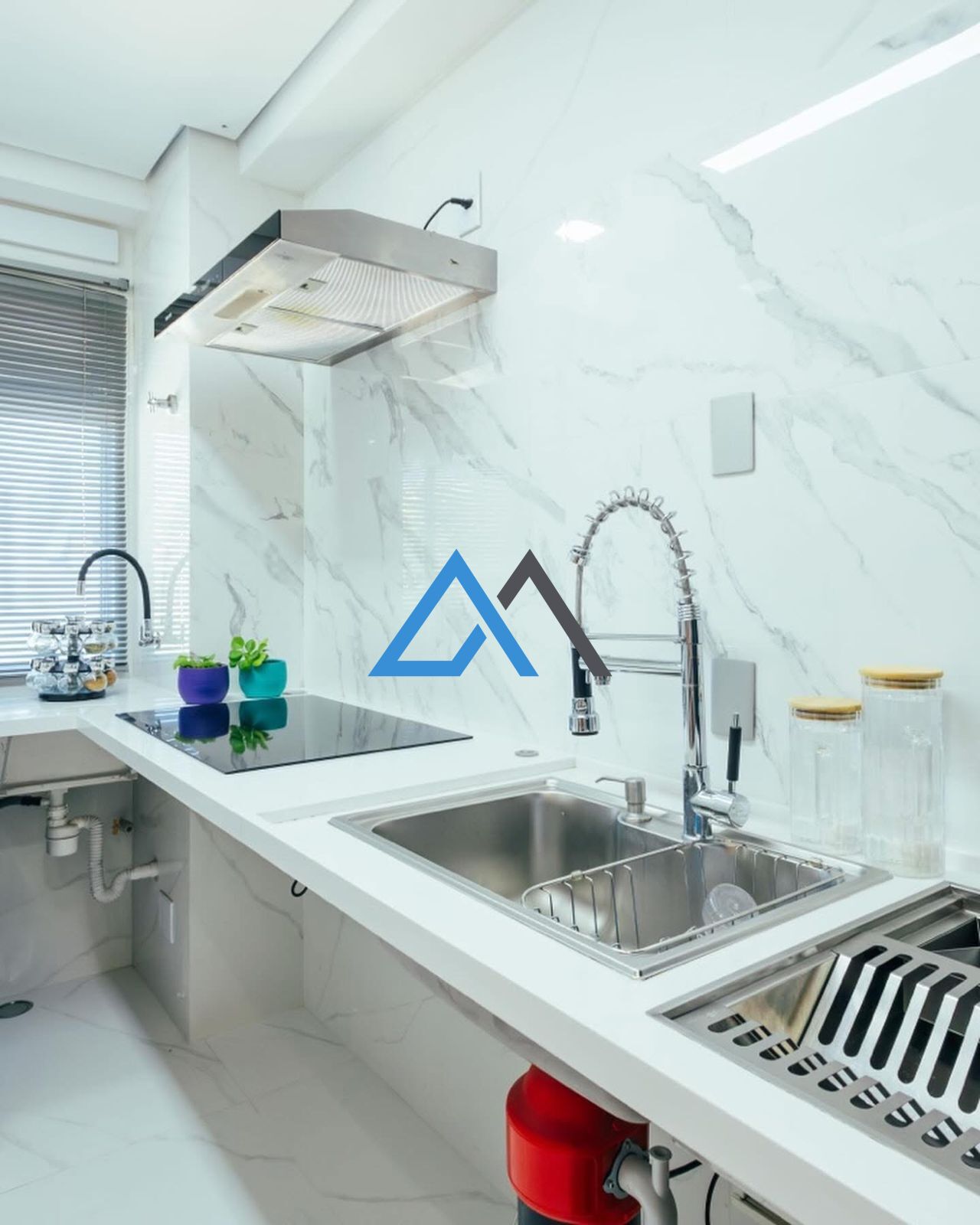- Cozinha integrada com bancada em quartzo