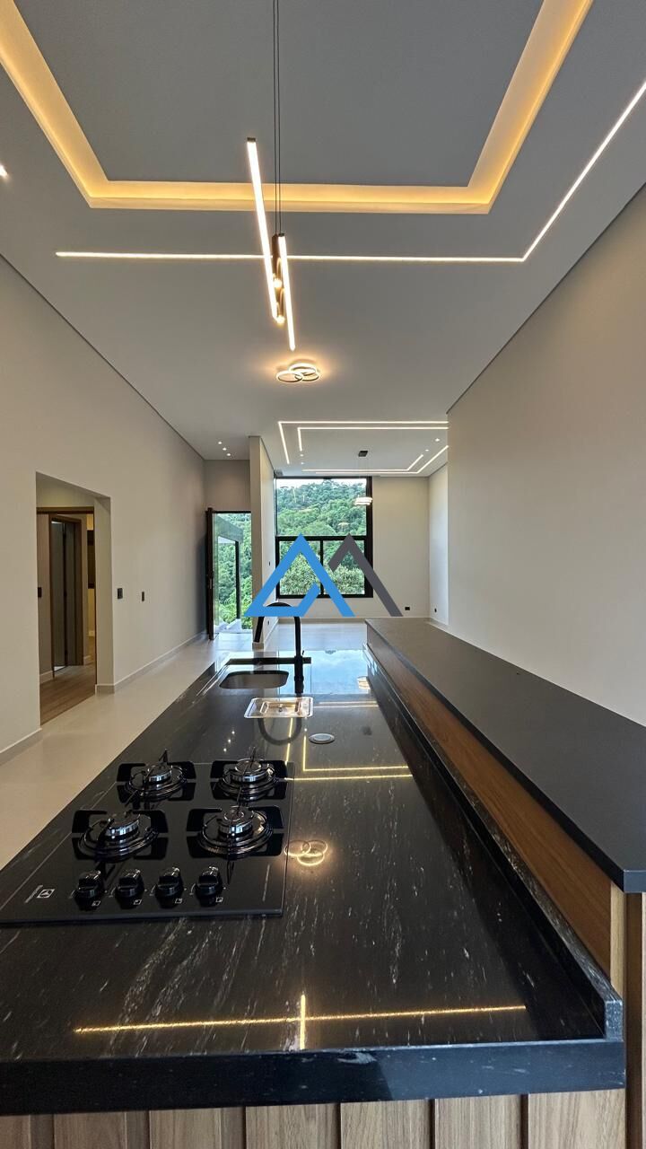 O acabamento é de alto padrão, com porcelanato nas áreas sociais, pedras de mármore e excelente qualidade construtiva. O imóvel oferece vista privilegiada para as montanhas e área verde preservada, garantindo tranquilidade e privacidade.